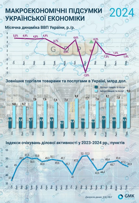 У 2024 році частка ГМК в економіці збільшилася за рахунок зростання виробництва сталі (+21,5%) і залізної руди (+55,2%). Стабільна робота «морського коридору» уможливила експорт з чорноморських портів України, що визначило позитивну динаміку випуску в металургійній галузі. За оцінками Мінекономіки, економіка України у 2024 році зросла лише на 3,6%.
