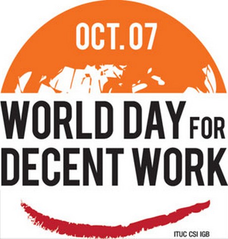 Щороку 7 жовтня відзначається Всесвітній день дій за гідну працю, який за ініціативи Міжнародної конфедерації профспілок та підтримки Міжнародної організації праці започатковано з 2008 року. Профспілки на всіх континентах традиційно проводять різноманітні заходи, щоб привернути увагу урядів і роботодавців до проблем на ринку праці та соціально-економічного становища робітників і посилити боротьбу за трудові права.
