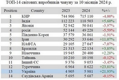 ГМК України поступово повертає позиції глобального гравця після відновлення експорту з чорноморських портів. У 2024 році Україна посіла 3-тє місце в світі серед найбільших експортерів чавуну. Також Україна повернулася в ТОП-5 найбільших експортерів залізної руди.