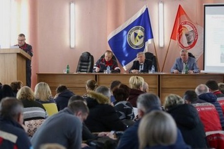 Голова первинної організації ПАТ «Криворізький залізорудний комбінат» Юрій Деркач поінформував присутніх про критичну ситуацію на підприємстві, яка призвела до затримок із виплатою заробітної плати та ускладнила забезпечення працівників належними умовами праці. Він детально розповів про заходи, яких вживає профком ПО ПМГУ «Кривбасзалізрудком» спільно з Криворізькою міською організацією ПМГУ для вирішення нагальних проблем, життєво важливих як для підприємства, так і для його трудового колективу.