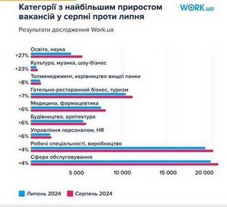 У липні на сайті Work.ua шукачі оновили або створили 330 522 резюме. Найбільше шукачів прибуло у прифронтових регіонах, а саме на Харківщині (+14% до червня), Миколаївщині (+14%), Дніпропетровщині (+10%), Одещині (+5%).Про це свідчать дані дослідження Work.ua.